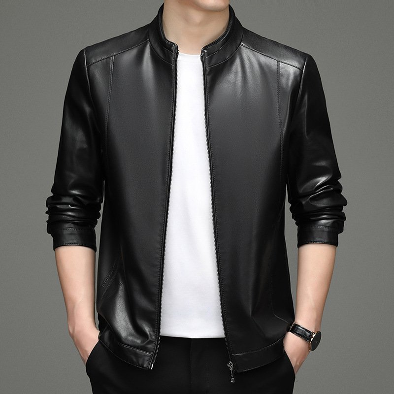 Men's sheepskin stand collar leather jacket